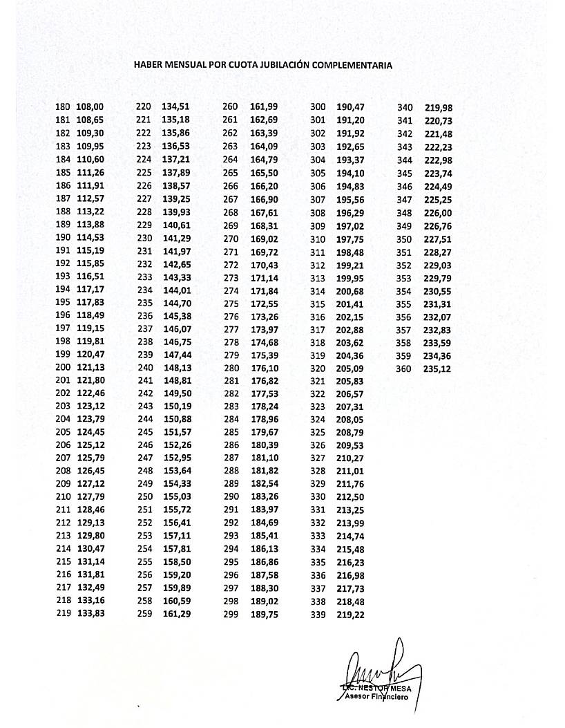 a) Jubilación Complementaria.-El haber se abonará en doce (12) cuotas de CIENTO OCHO (108) UBC mensuales por año y por cada plan suscripto y cancelado, junto al haber jubilatorio del que goce el beneficiario. Este beneficio comenzará a regir en el momento en que se haga efectivo el primer haber jubilatorio del Sistema Básico y se extinguirá al mismo tiempo y por las mismas causales que el derecho a percibir esa jubilación.